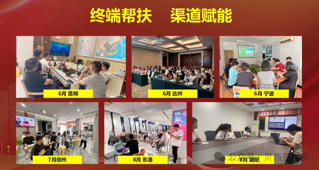 自2024年以來,貝西亞陶瓷多部門協(xié)同聯(lián)動,馬不停蹄輾轉(zhuǎn)全國各地,深入一線實地開展終端賦能幫扶、產(chǎn)品交流鑒賞、渠道拓展創(chuàng)富之旅,收到了積極的成效和良好的市場反饋;同時也助力終端經(jīng)銷商在市場中掌握主動權(quán),實現(xiàn)利量雙線創(chuàng)收,領(lǐng)勢先行。